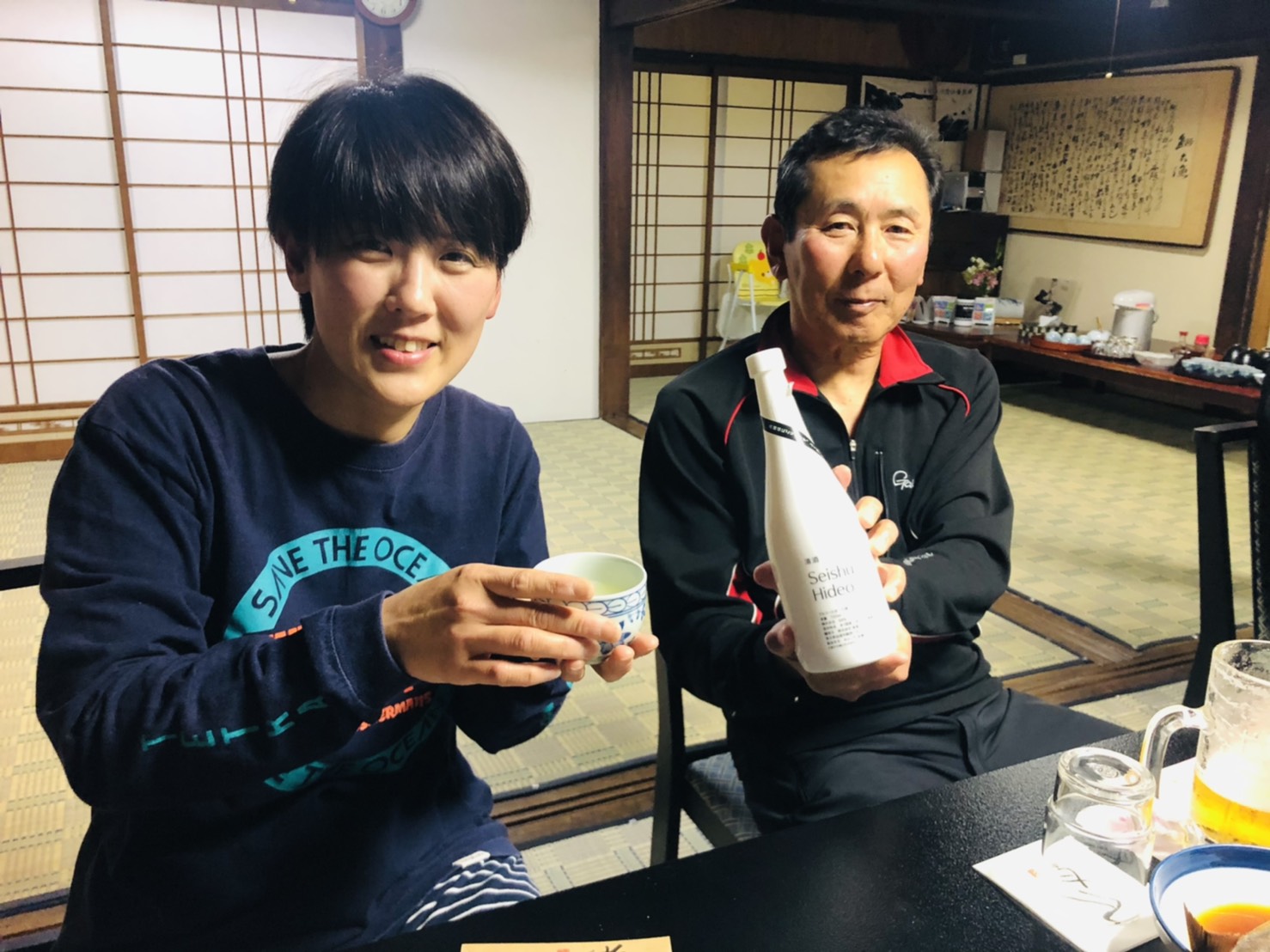 みなさん、それぞれ飲み物は持ち込みで私は30度の泡盛とにごり酒です。