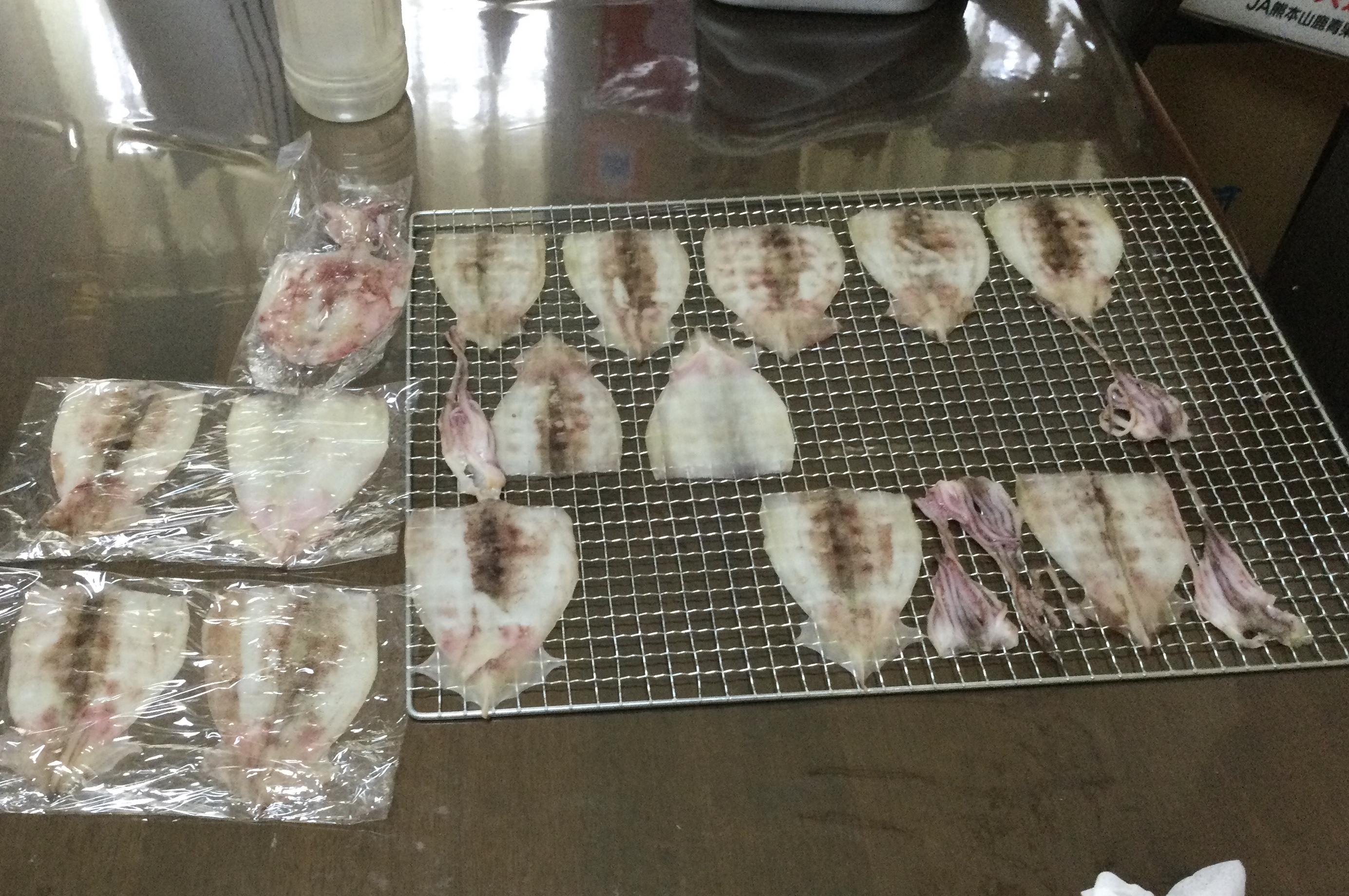 次は、先日のイカ釣りで小型のスルメイカが多かったので、生干しにしました。