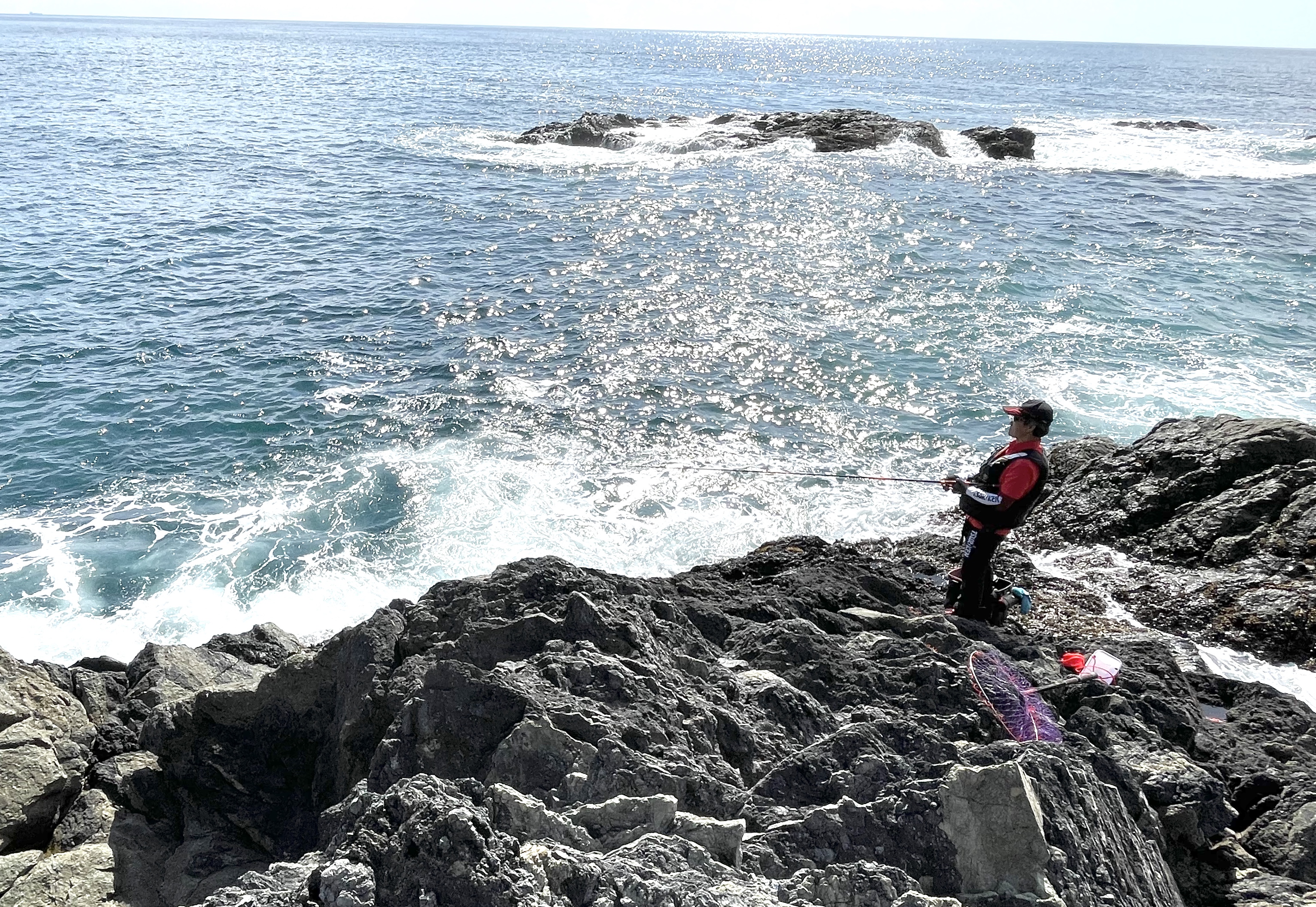 私は、テツ王子とカイドクの鼻?に上がり夜が明けるまで根魚を狙います、でも