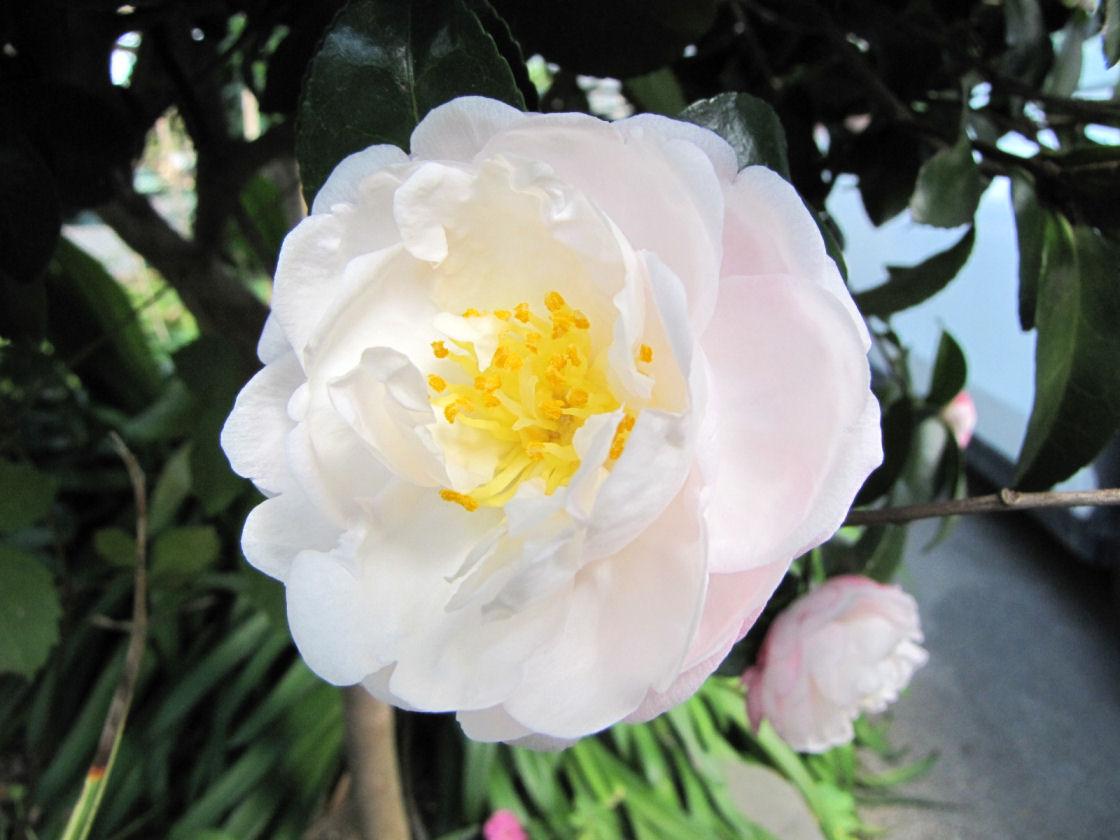 山茶花でしょうか、寒椿でしょうかどちらも種類が多くて特定できません。