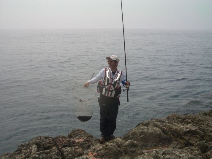 尾長を釣り上げ嬉しそうな笑顔です。
