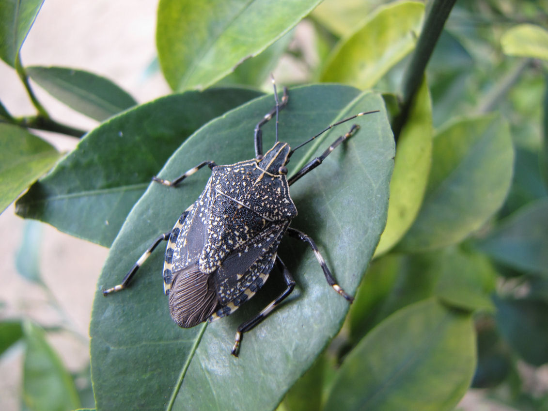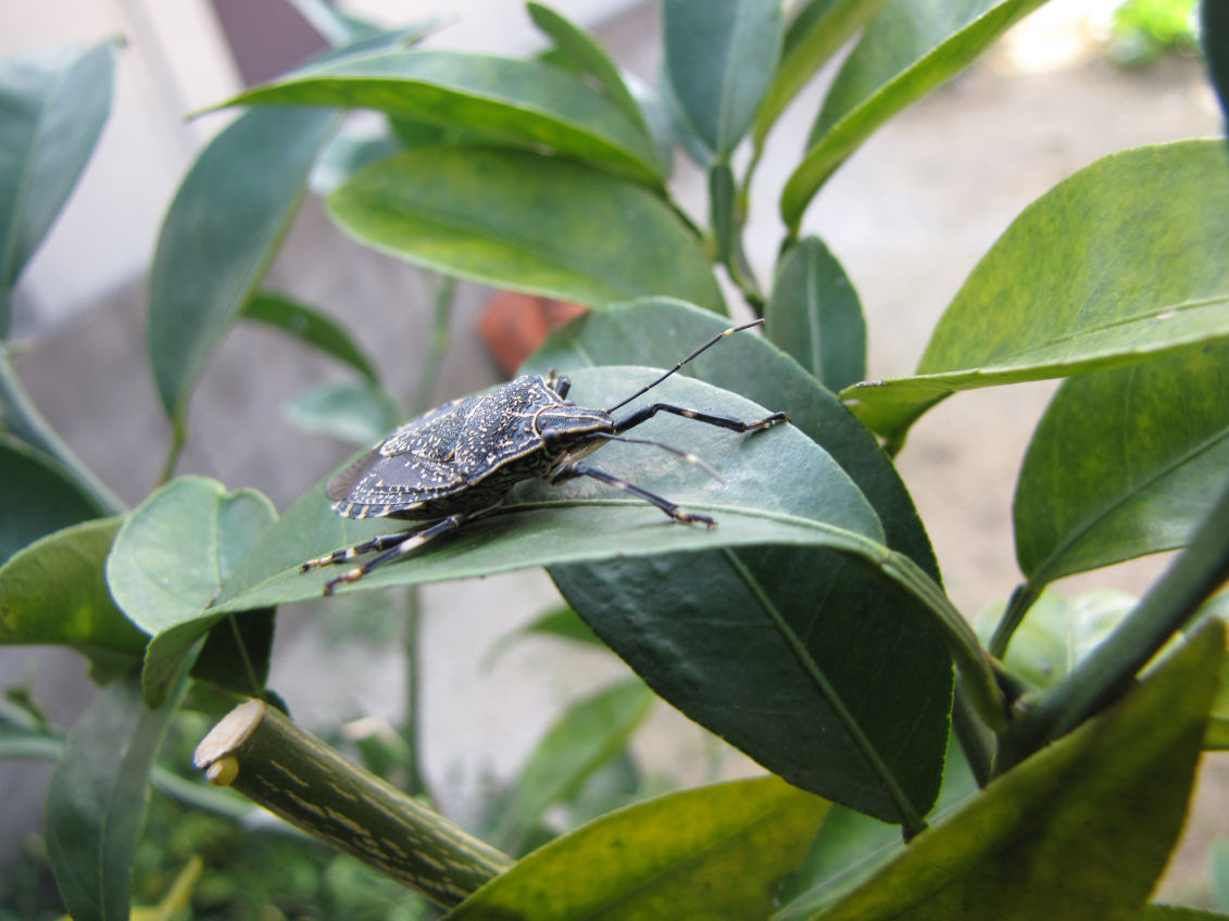庭のスダチの葉にガメラが舞い降りていました。