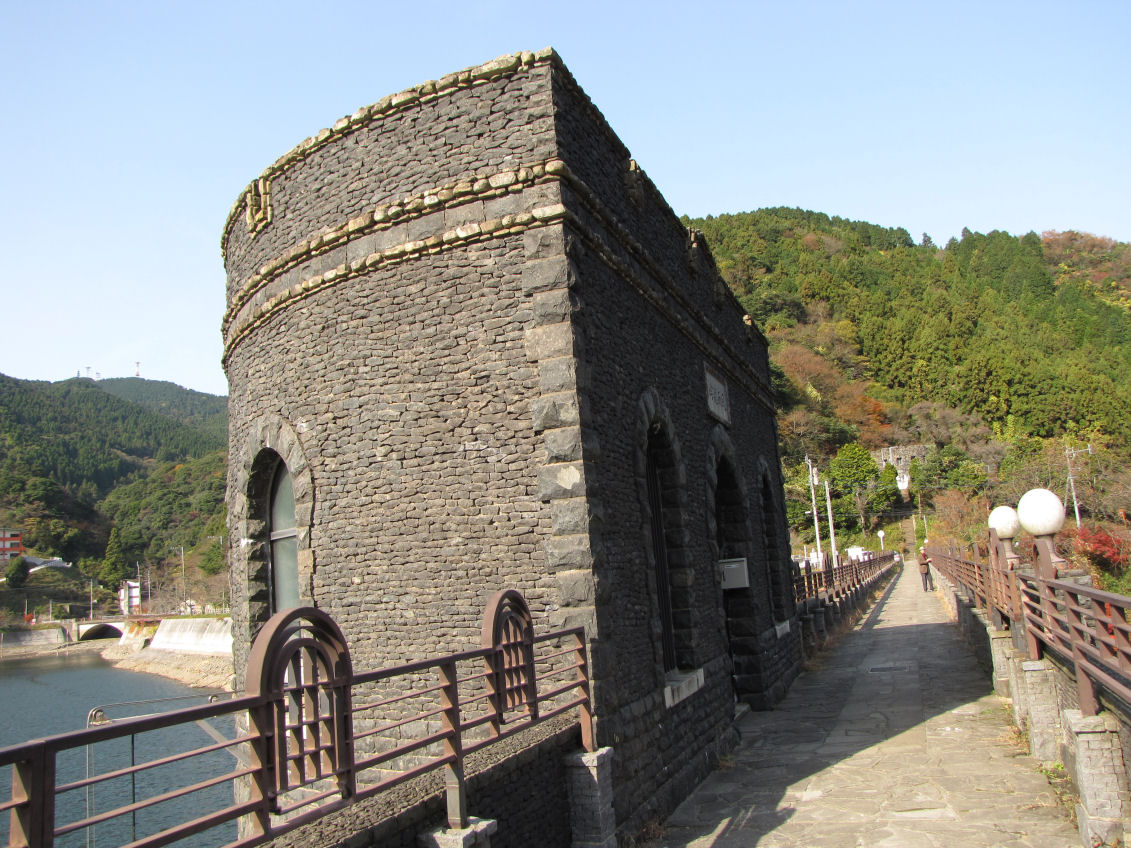 この貯水池は大正8年から昭和2年に掛けて工事が行われ、コンクリートの両面に地元の石を張り巡らせた当事としては豪華な造りだったそうです。