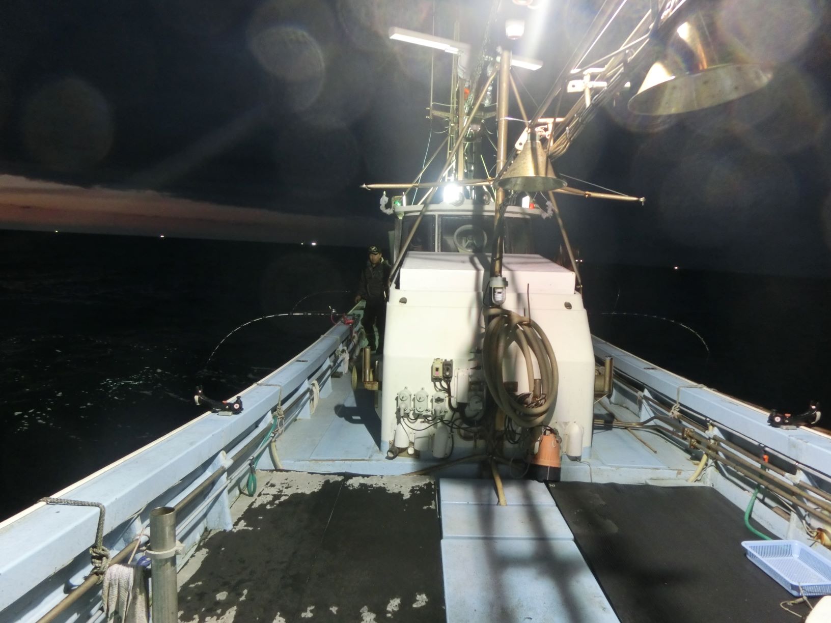 ふかしま丸の待合所でみんなで食事を済ませ早めの就寝で、朝5時に港を出発し