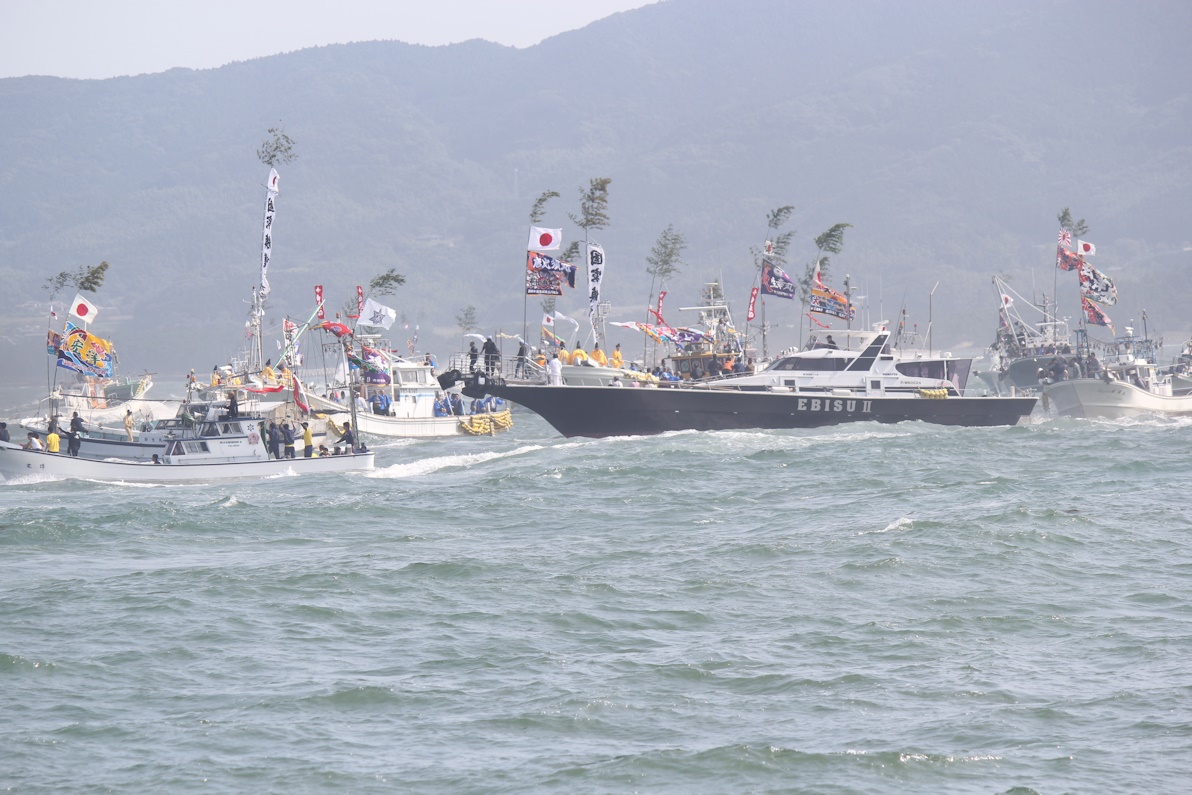 御座船が港に入る前には沖合で船団が御座船の周りを旋回して別れていきます。