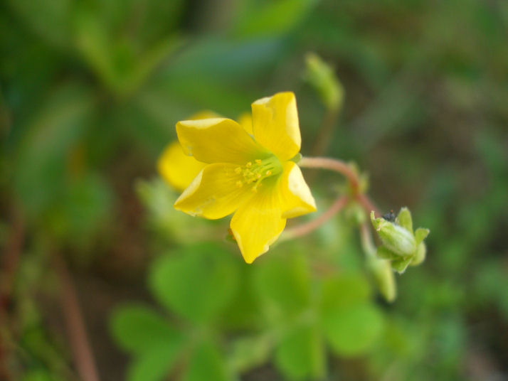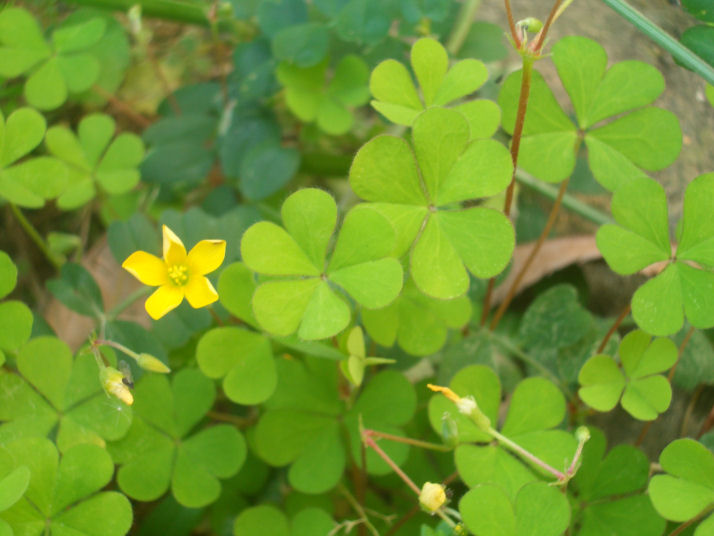 カタバミです。 カタバミ科の多年草で世界中で見られます、この草は根が地中に真っ直ぐに伸びるので引っ張っただけでは根が途中で切れて又そこから生えてきます、完全に駆除するのは大変なことです。