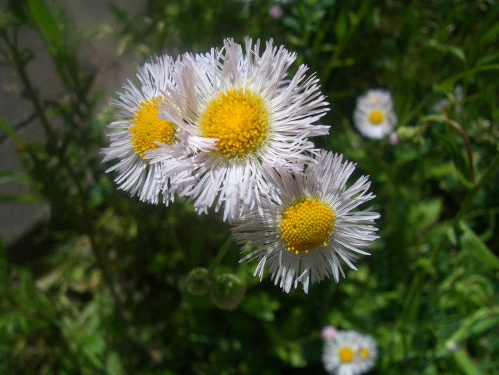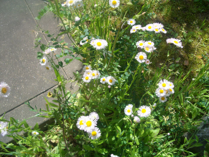 この花はハルジオンです、北アメリカ原産のキク科の多年草です。この草は繁殖、定着力が強く元々ある生態系を脅かす恐れがあるので、外来生物法の要注意種に選定されているようです。