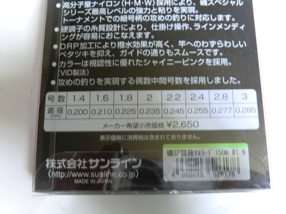 マスラードの1.6号ですが、今迄は1.5号と1.75号でしたが1.6号の下に1.4号があります。