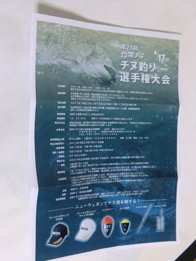 今日聞いた情報では、釣研のチヌ釣大会が中止になりそうな雰囲気です。