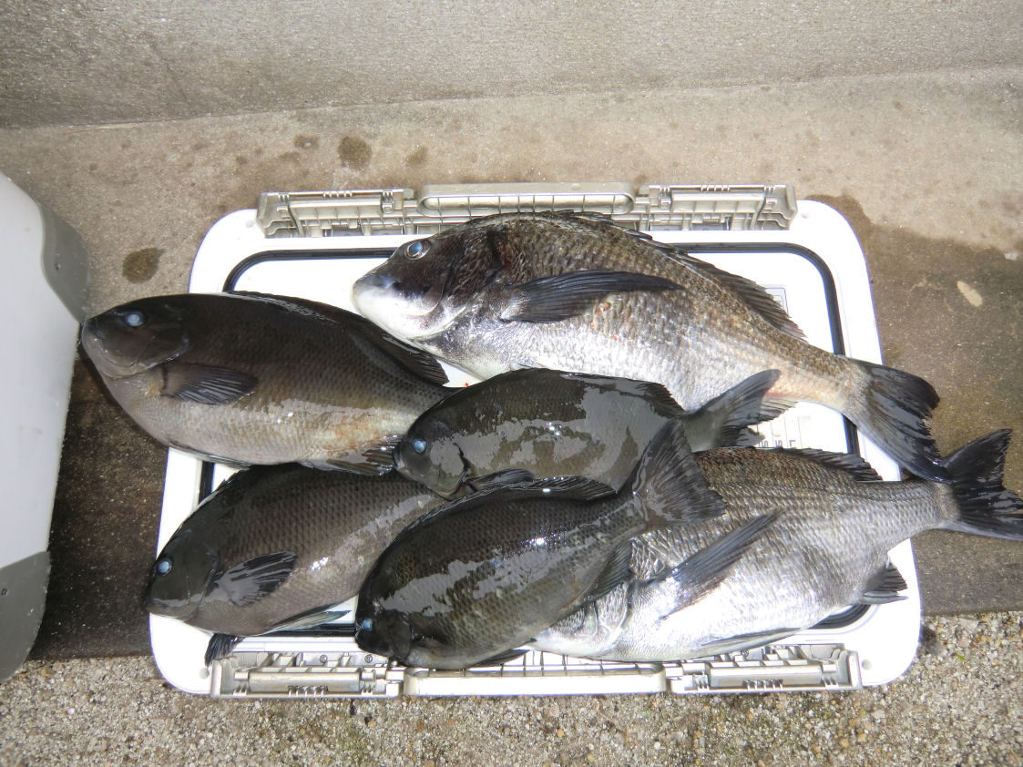 釣果は 45cmと40cmのチヌと35cmから28cmまでのクロが4匹でした。
