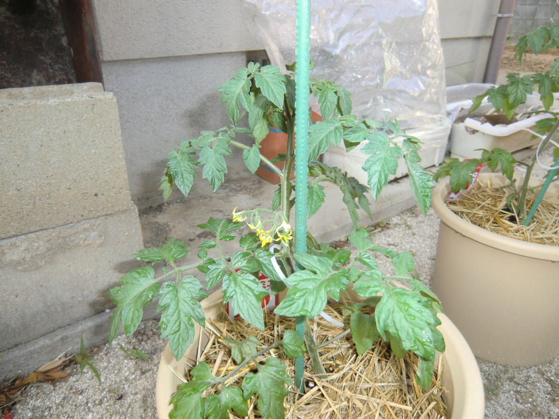 苗をプランター植えにしたミニトマトのシュガーミニはだいぶ大きくなりました。