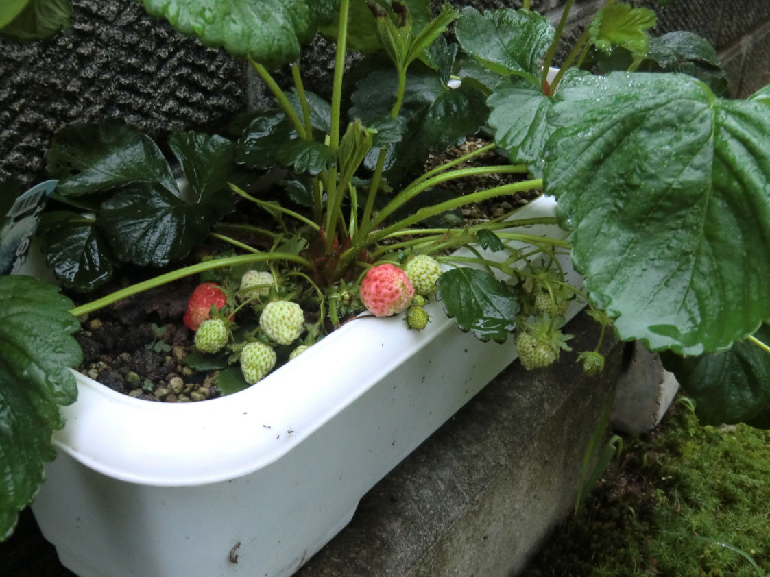 イチゴがぼちぼち色づき始めました。