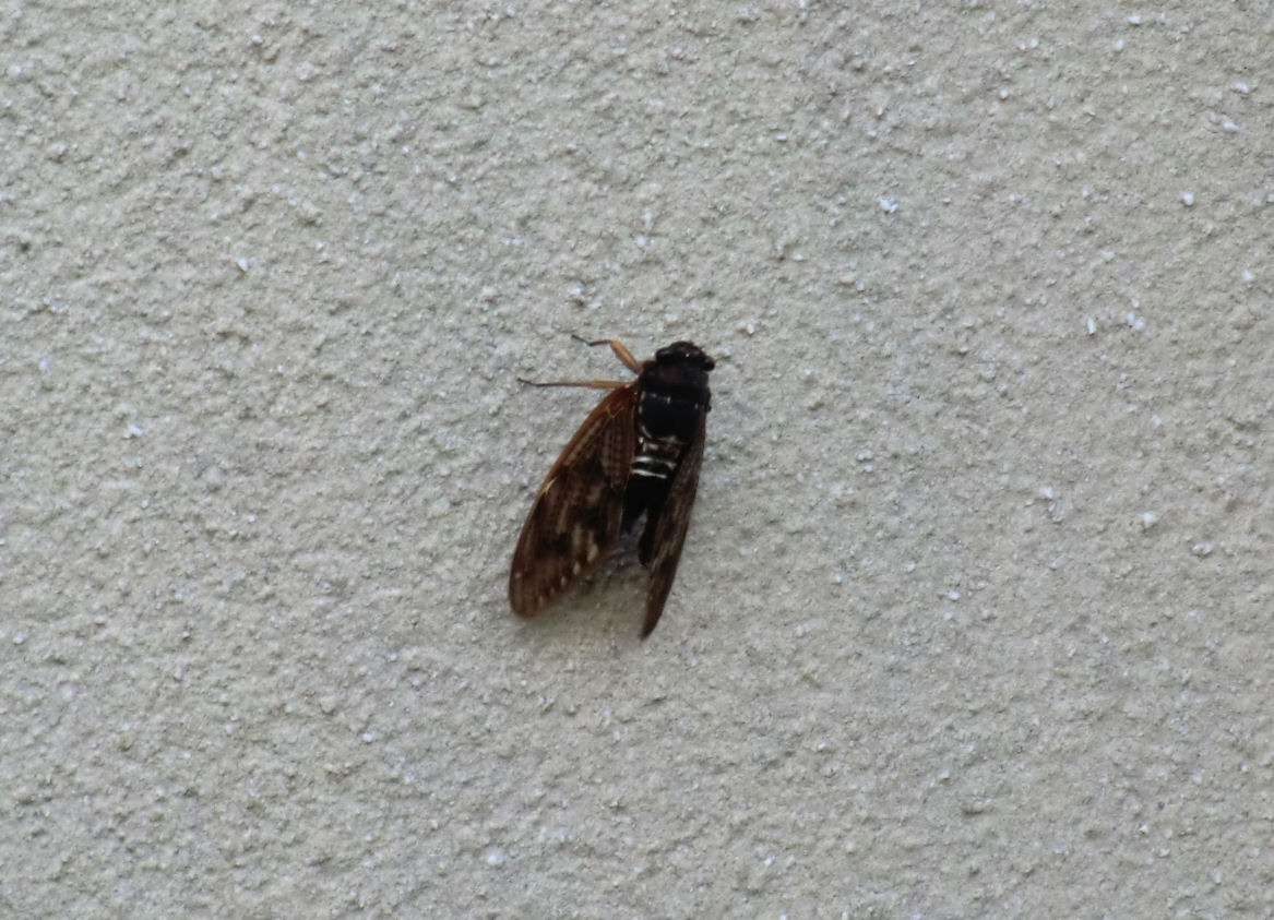 家の壁に止まってジージー鳴いていました。