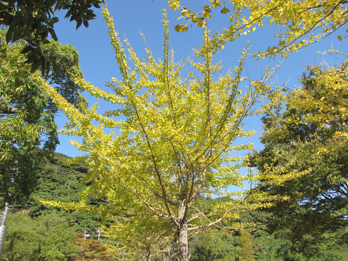 そしてふもとのイチョウの木は少しずつですが黄葉が進んでいました。