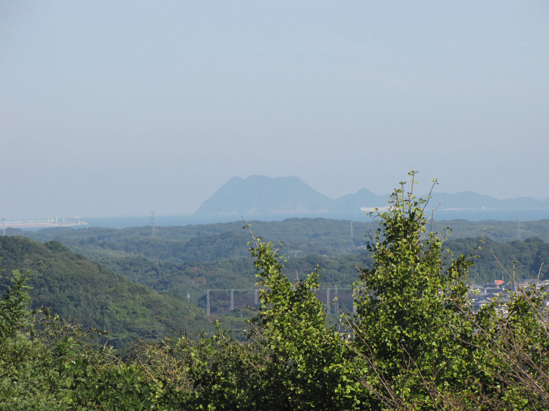 また 展望台から北東を眺めると、下関沖の響灘に浮ぶ蓋井島が見えます。