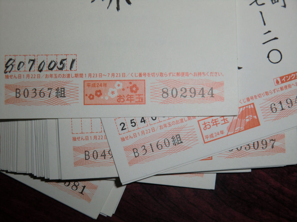 2012年 お年玉つき年賀はがきの当選番号です。
