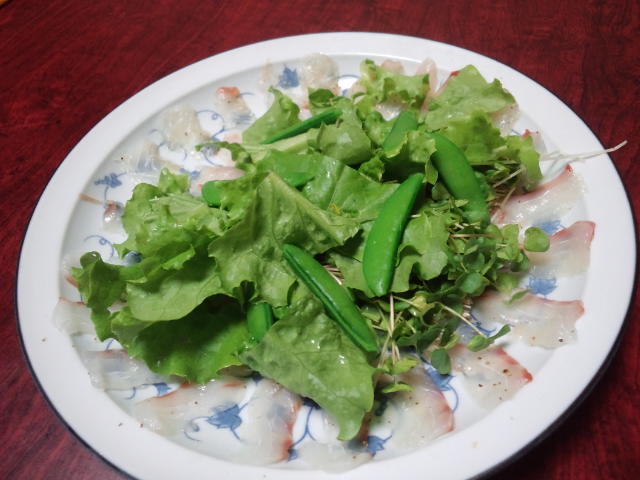 昨日釣ったチヌでカルパッチョを作ってみました。 ドレッシングも塩麹で作りました。