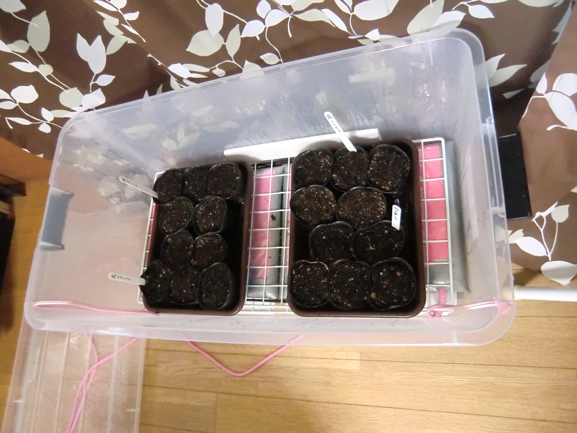ミニトマトはある程度育ってきたので、簡易温室に移して背丈が15㎝位になりました。
