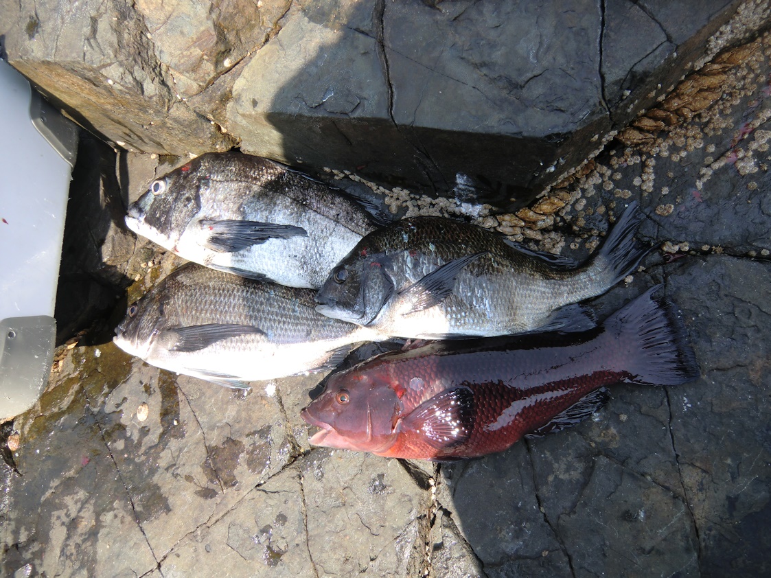 そうしている内にウキがじわじわと沈んで行き3匹目のチヌを取り込みましたが、生憎回収時間が近づいたので納竿です。