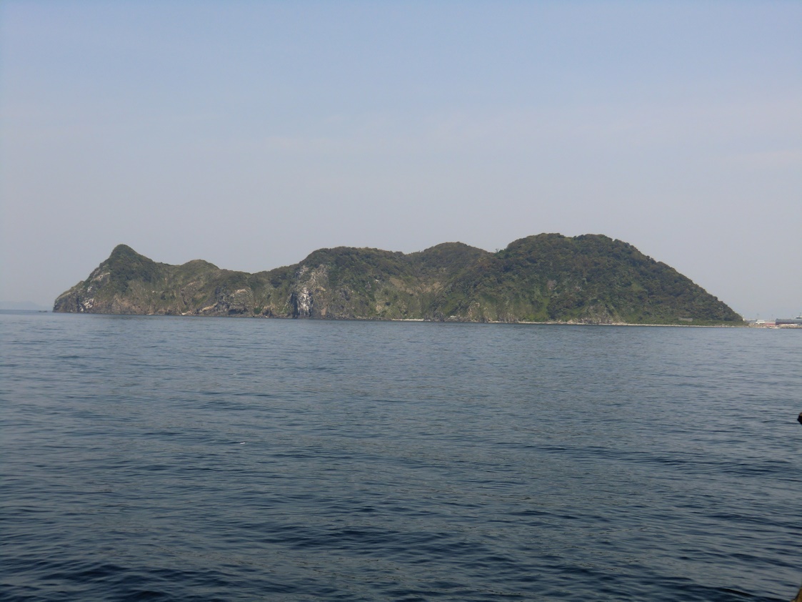 これが男島です、左端の向こう側に白島のシンボルであるローソク岩や壁島があります。