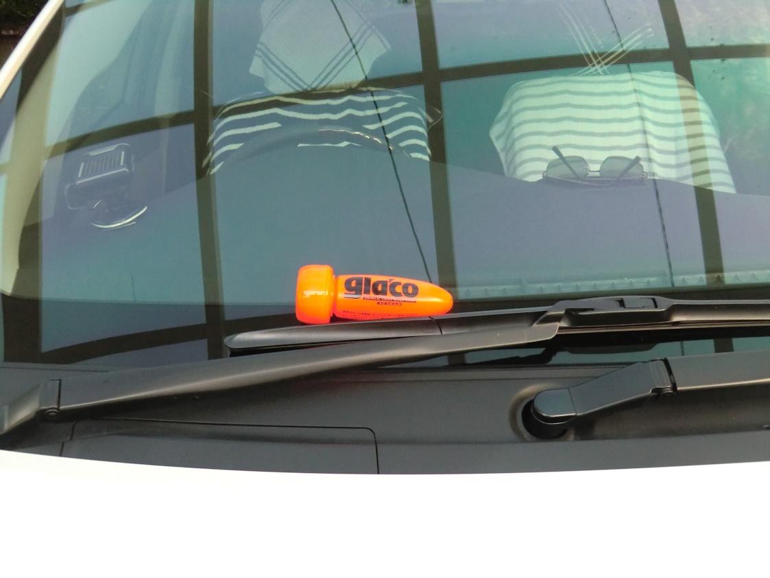 今日は久しぶりに薄日の射す、しかも涼しいくらいの気温に今の内だと車のフロントウインドの撥水処理を行いました。