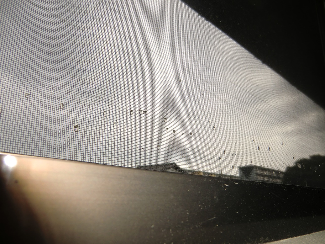 不思議なのはこの網戸だけなんです、すぐ横の網戸も反対側の大きな網戸にも付きません。