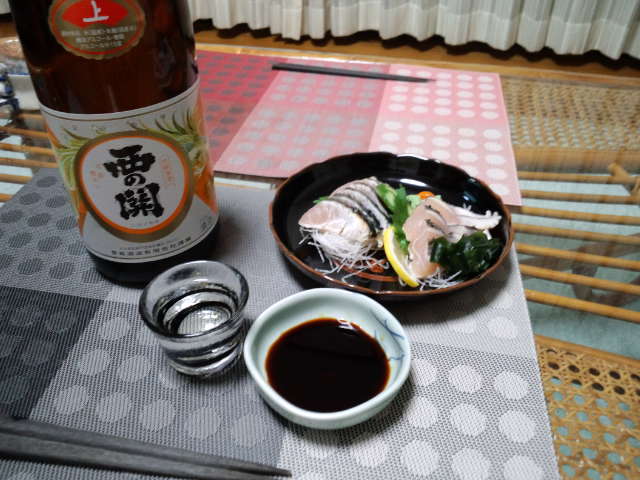 今日は鰆のたたきで大分の銘酒西の関を遣っています。