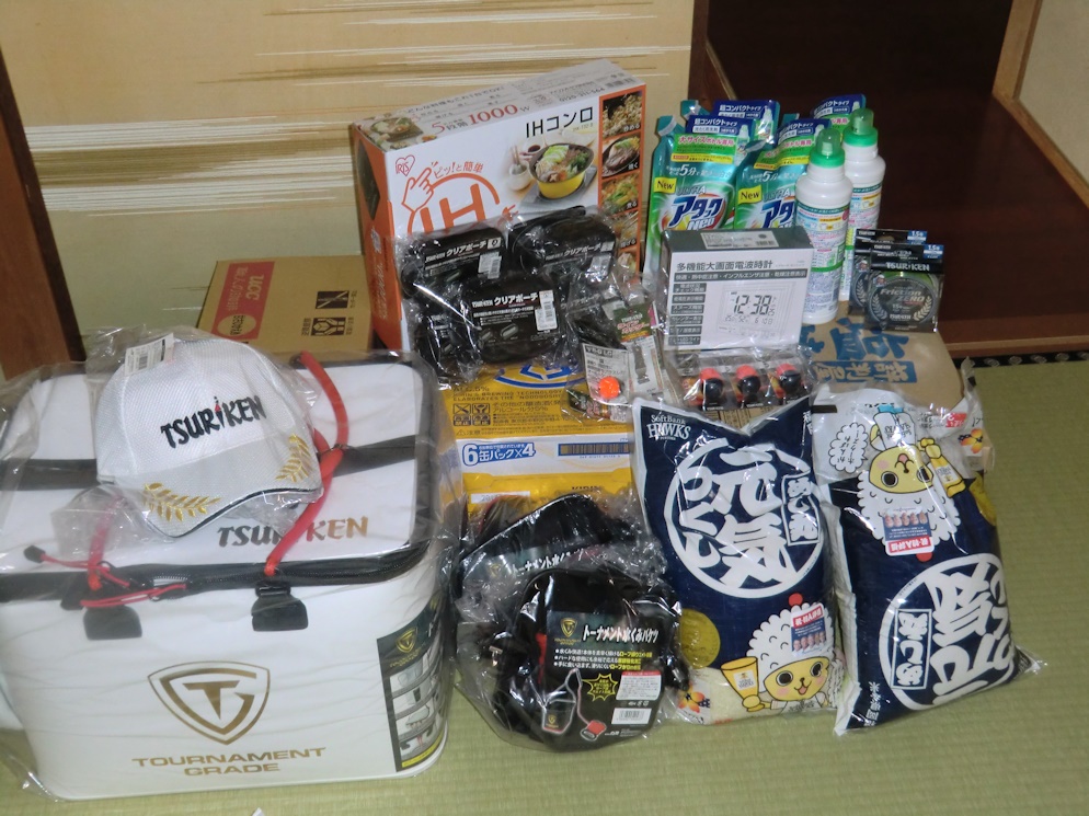 次の日曜日の釣研FG北九州支部総会の抽選会用の賞品がそろいました。