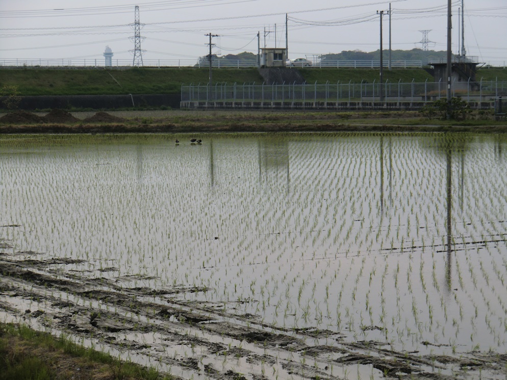 合鴨農法でしょうか、奥の方に合鴨が3羽何かを啄んでいました。