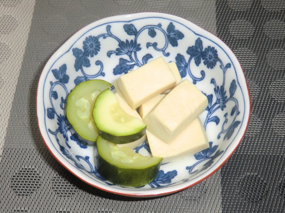 収穫したズッキーニを高野豆腐と煮物にしました。