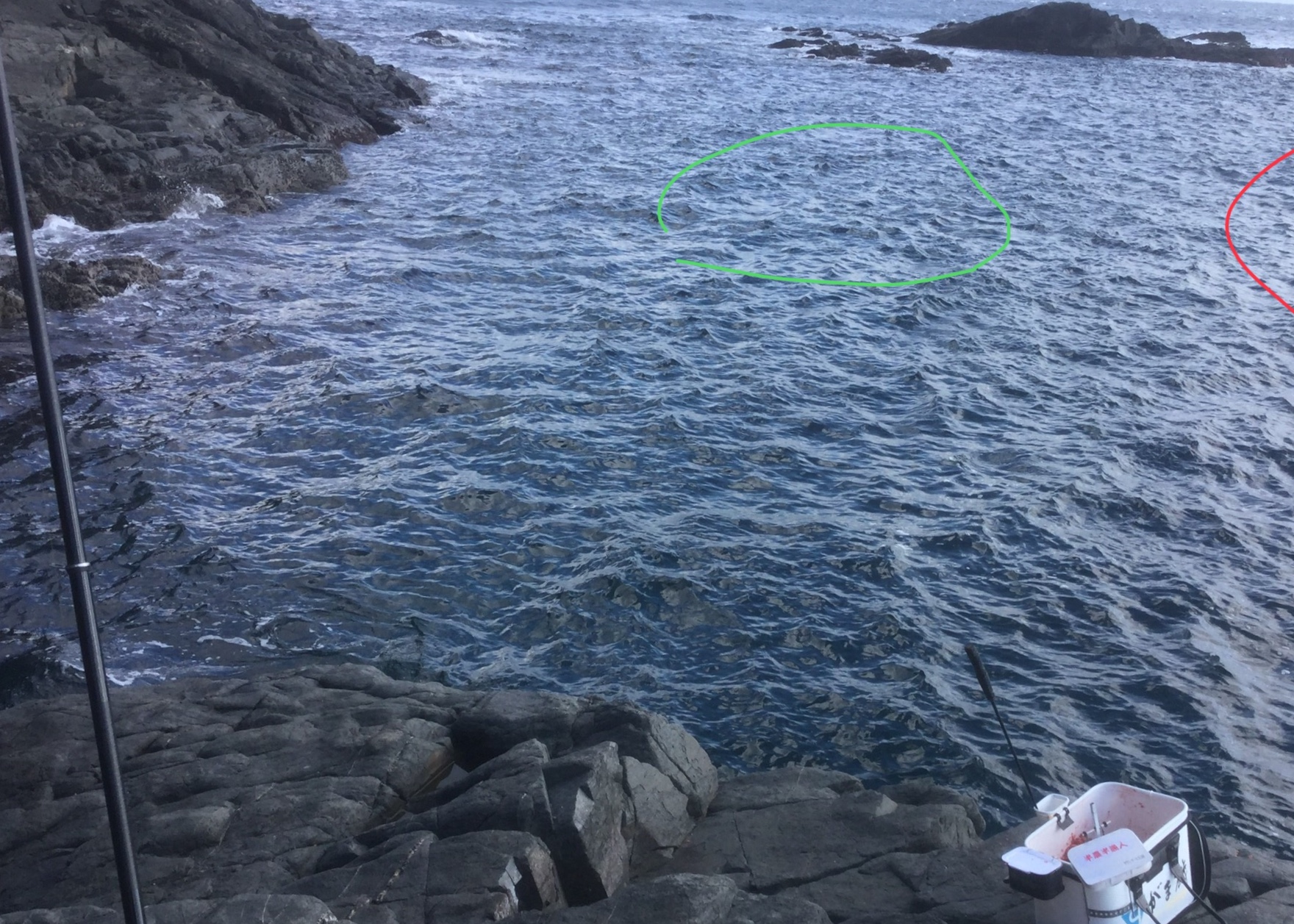 それで 上がった瀬は湾口のサザエの横の三角です、ですがこの三角は足場が悪いでは収まらず、