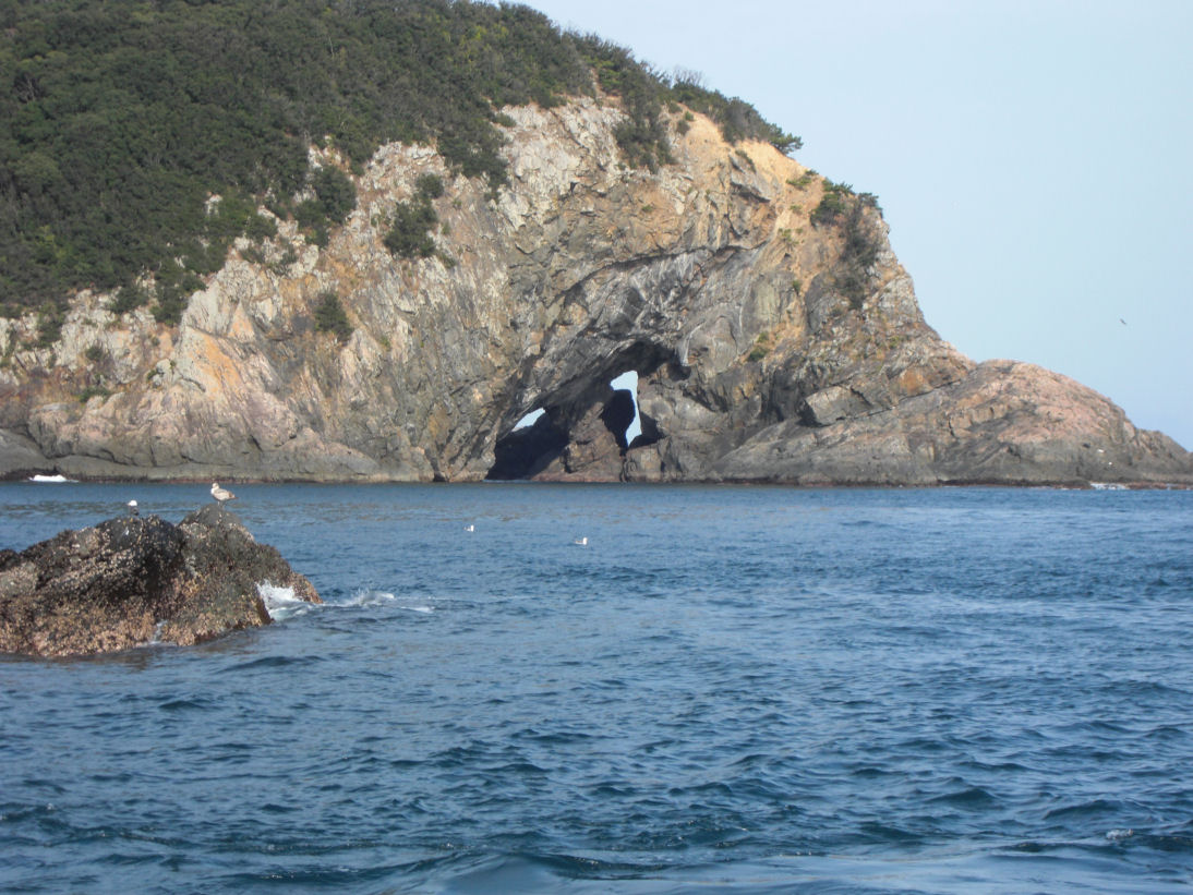 15日の釣りが終わり大島側の釣り客を回収に行った時、小島の客を回収している時にダンの窓を見ると何と穴が塞がっているでは有りませんか、崩れ落ちたのかなと思いびっくりしていたら、何のことは無い窓を見る角度が違っていたんです何とそそっかしいんでしょうか?