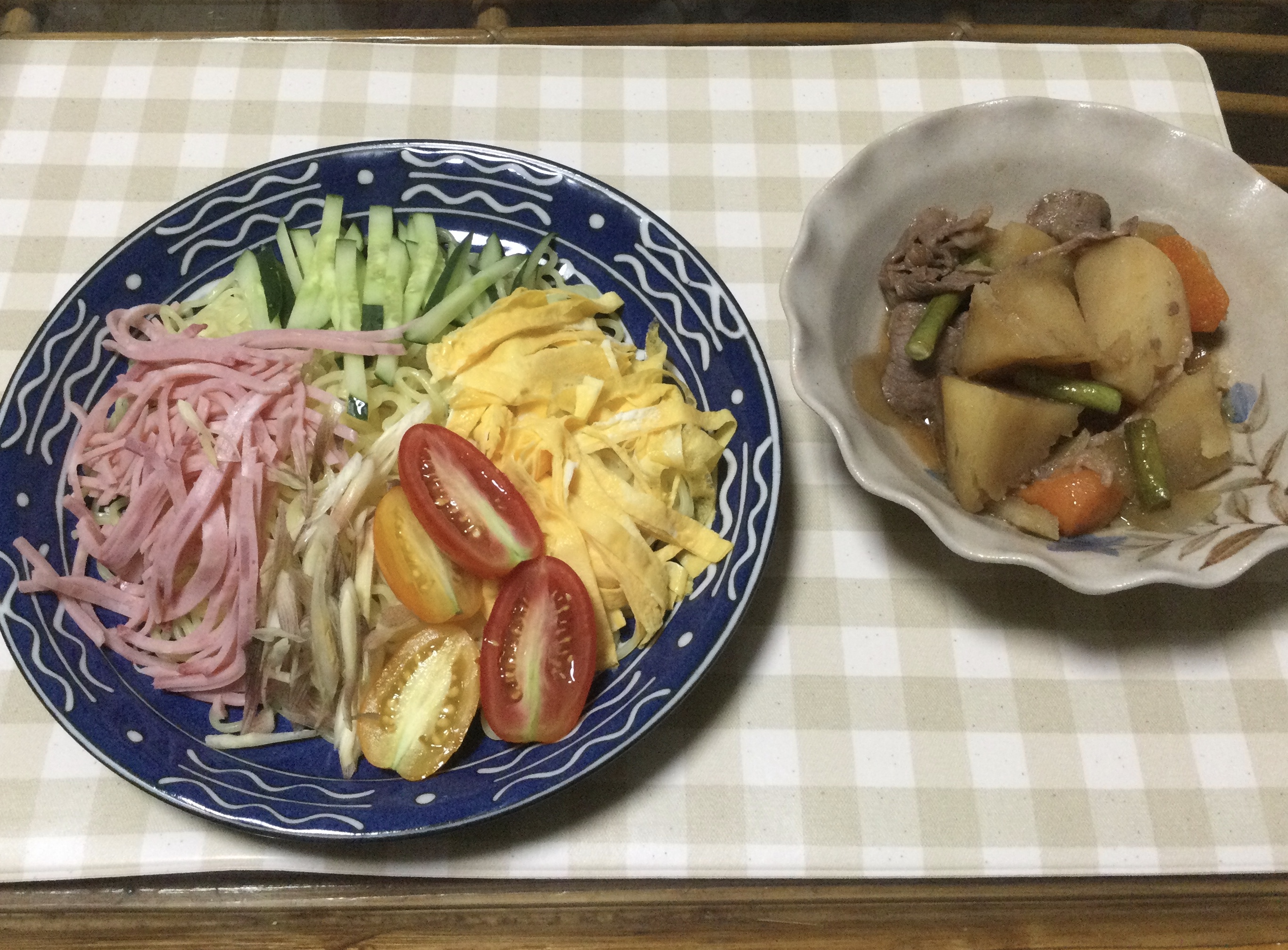 2回めの冷やし中華とアンバランスな肉じゃが