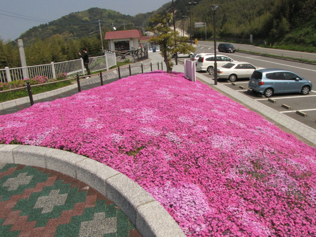 唐津、宮之浦方面に行く時に使う二丈浜玉かもめロードの休憩所の、芝桜のじゅうたんです。