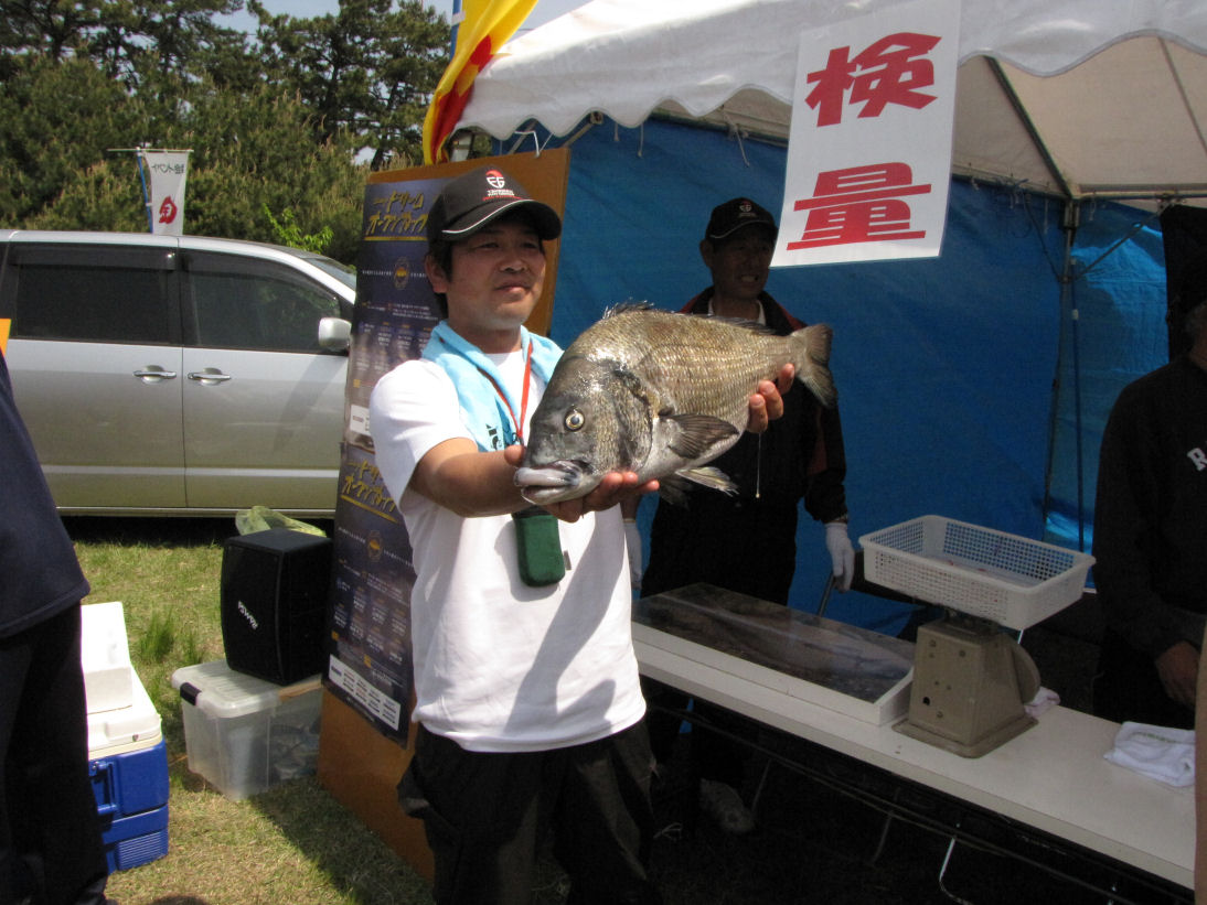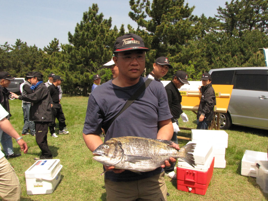 4月19日 約150名の会員によるチヌ釣り大会は大成功で幕を閉じました。1位から10位までと飛び賞が5名の方に賞品が用意されていました、今年は大型のチヌが数多く出され何と1位から5位までが50オーバーでした、中でも1位は福岡支部の会員さんの56.7cmで、2位が台湾からの会員さんで55.2cmという普段でもなかなかお目にかかれないビックママを釣ってこられたのには驚きました。