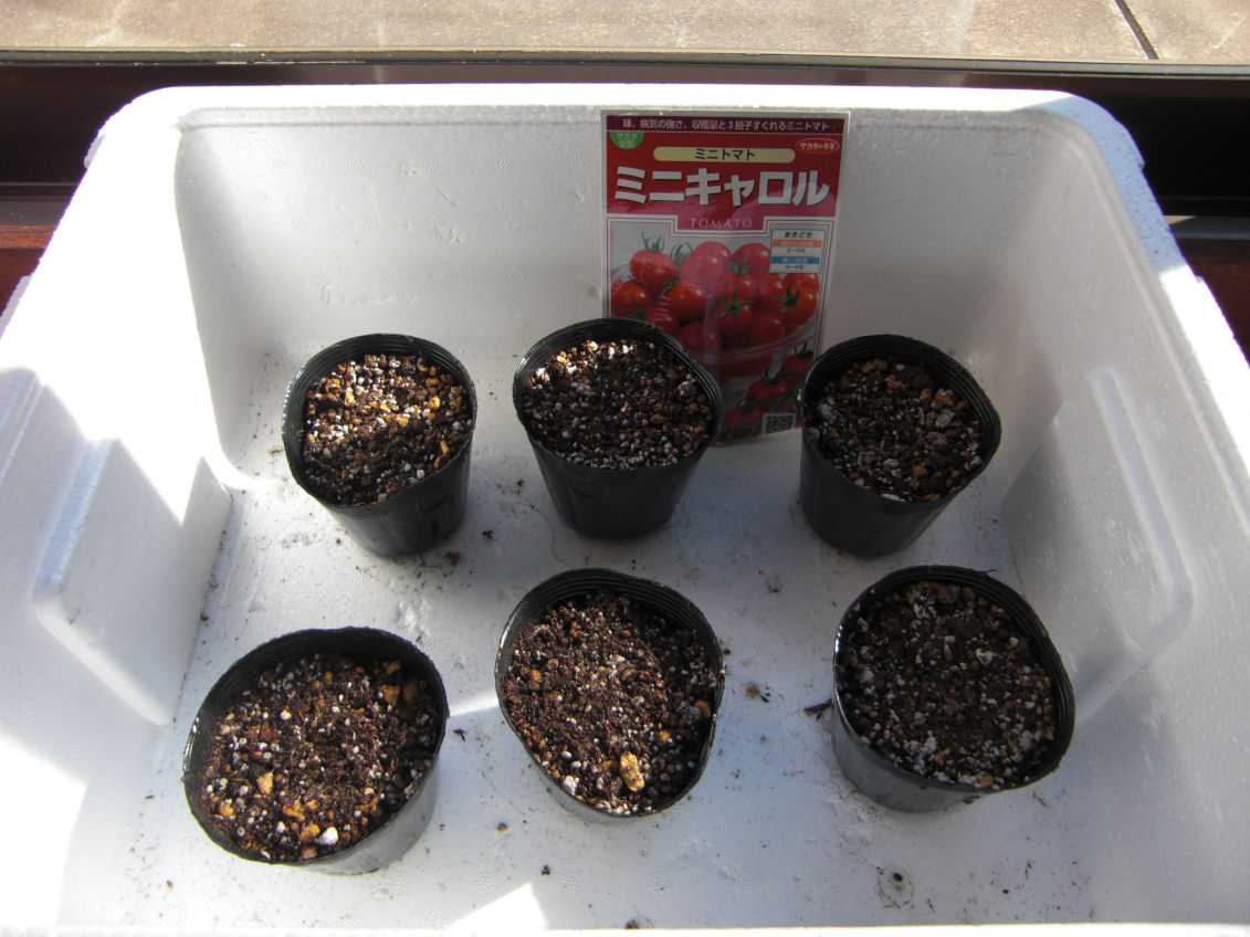 これはミニトマトです、芽が出るまでは日当たりのいい部屋の窓際に置いておきます。