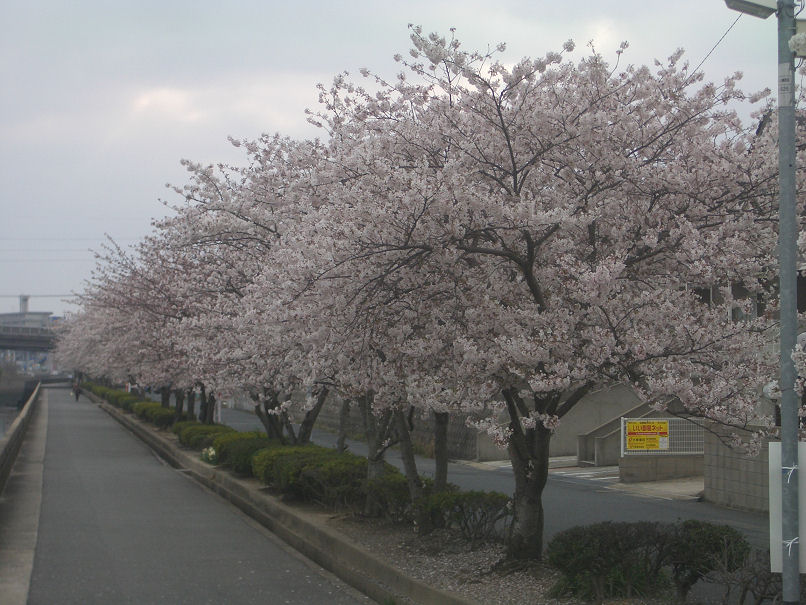 会社への行き帰りに通る桜並木です、月曜日に撮影したものですが、今日の雨と風で桜吹雪が舞っていました。