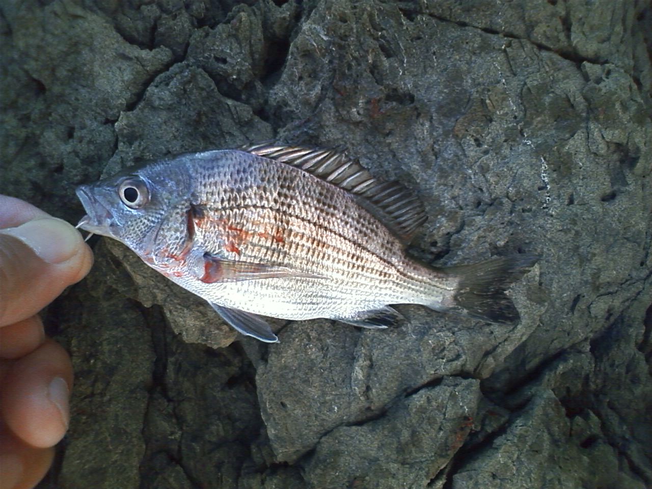 5センチ程のメイタが餌取りのようです。