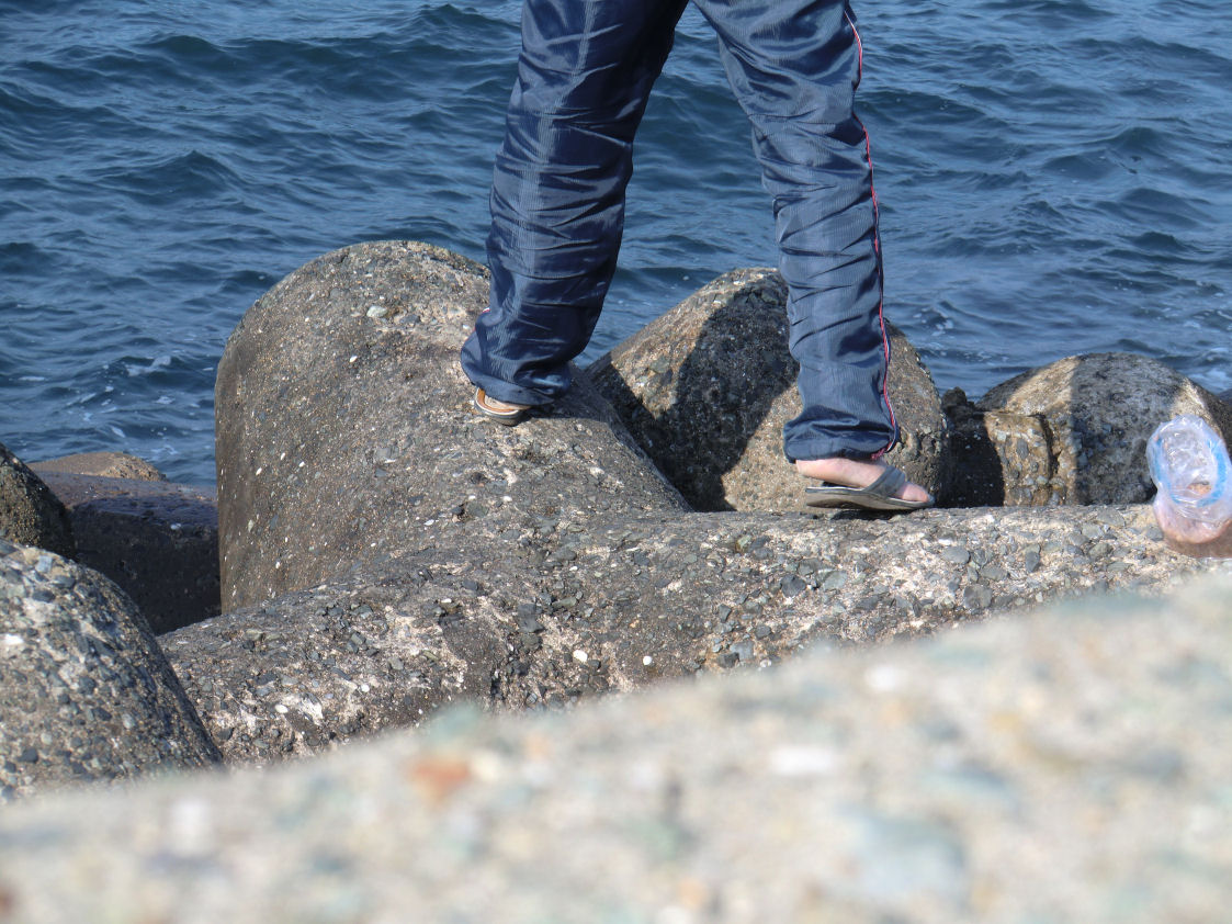水溜りに残った撒き餌はカモメが来て綺麗に食べてくれました。