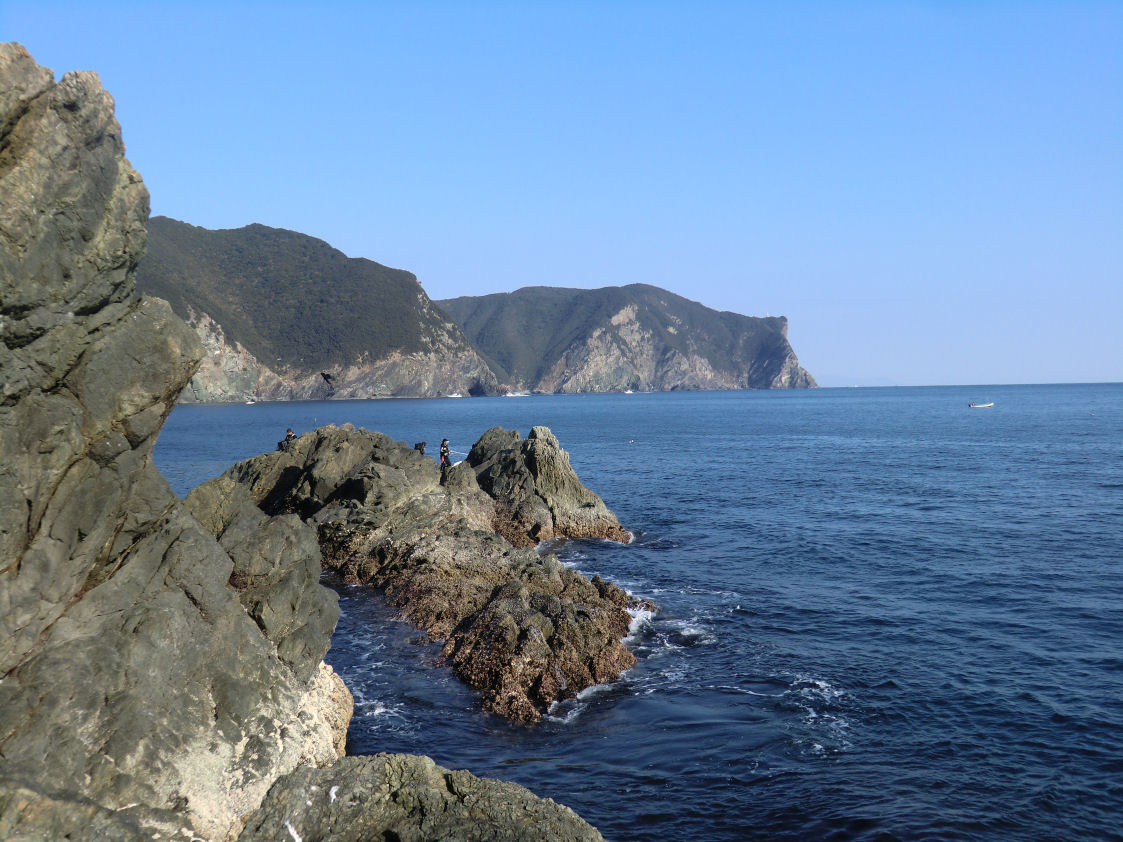 左にワニのハナレがあり、その遠景には鶴見崎が見える場所です。