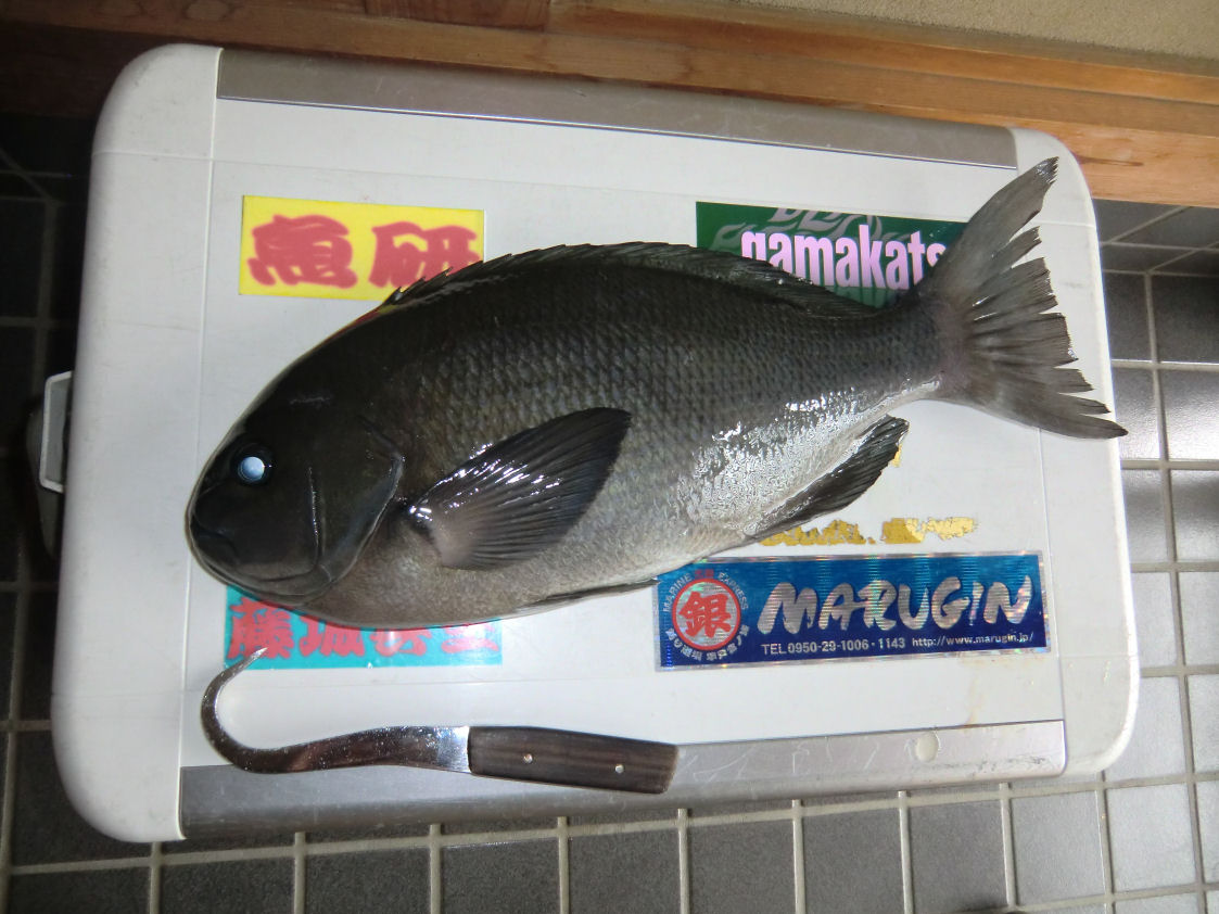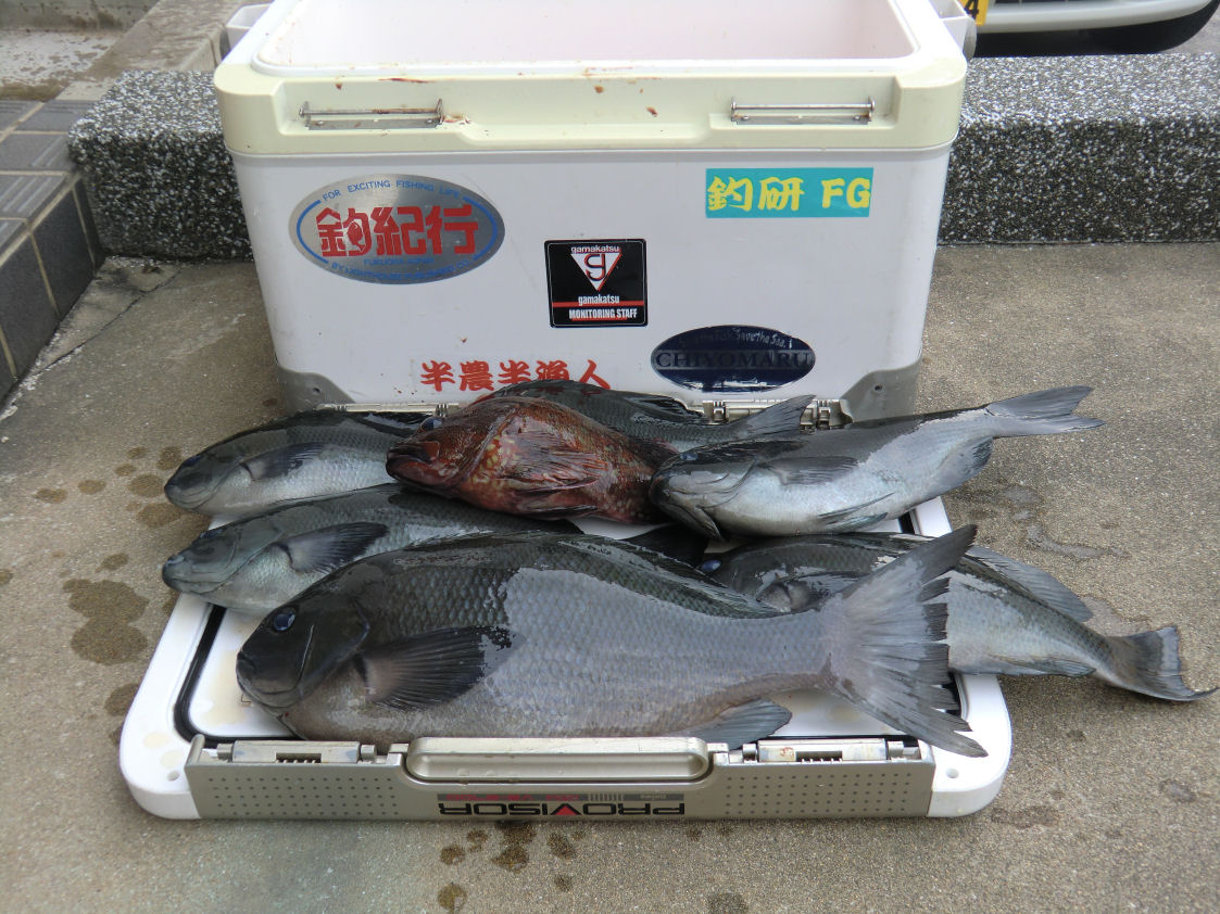 その後下げ潮になり厳しい状況が続きましたが、何とかポツリポツリと釣り上げクロが30cmから46cmまで6匹と、30cmのアラカブ1匹と言う釣果でした。