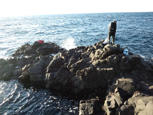 24日夕方5時に頭ヶ島の立つ瀬のヘタに瀬上がりして、夕まずめを狙うべく急いで準備を済ませ、遠投で狙いますが風に邪魔をされ撒き餌が届かず中間距離を攻めましたがコッパのオンパレードで意気消沈です。