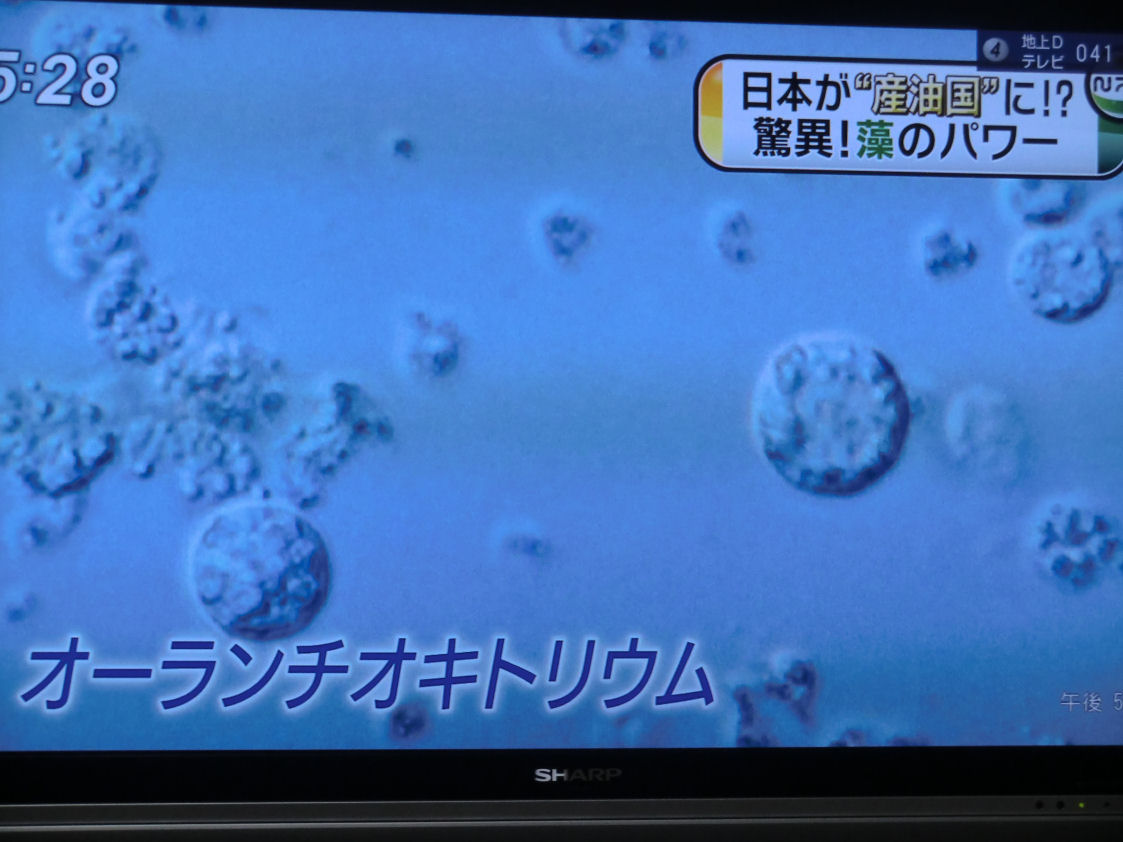 オーランチオキトリウムと云う藻の仲間ですが、石油に相当する燃料が出来るそうです。