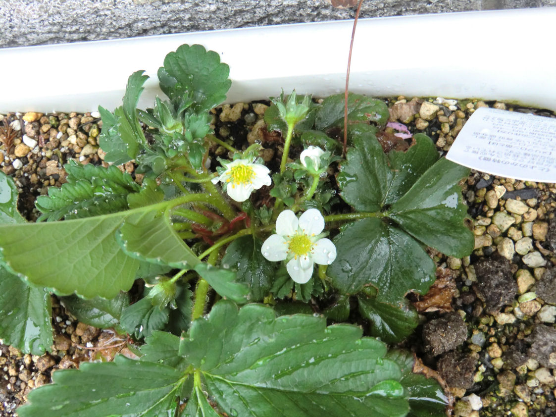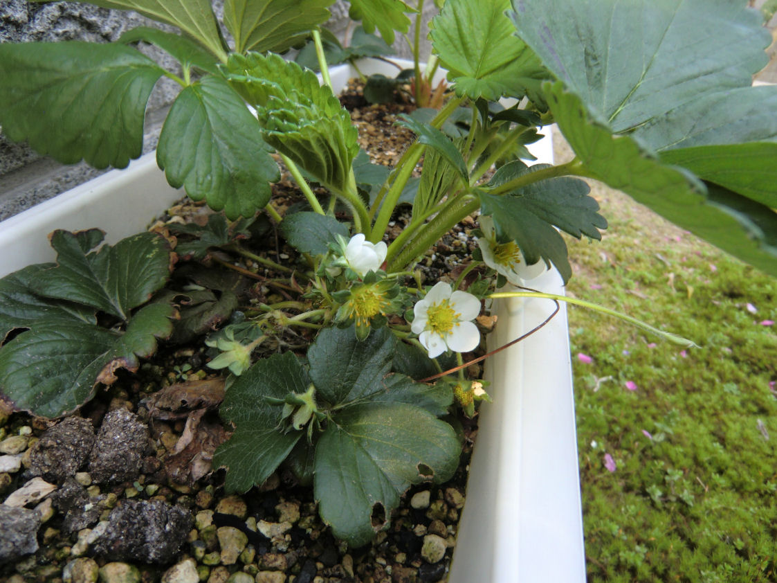 ランナーから伸びた子株を育てたイチゴは順調に育っています。
