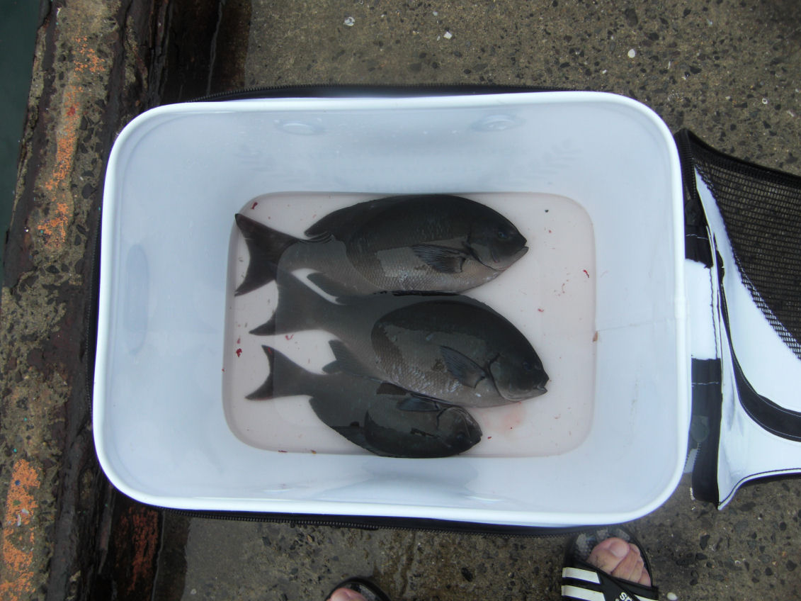 私は 辛うじて3匹のクロを釣ることができましたが、比較的風の影響の少ない所に瀬上がり下選手たちは数を釣っていました。