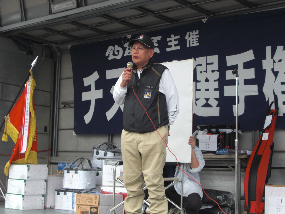 試合も終わり会場に帰ってきてからは、検量の集計が終わるまで高園満名人によるチヌ釣りの話をして頂きました。