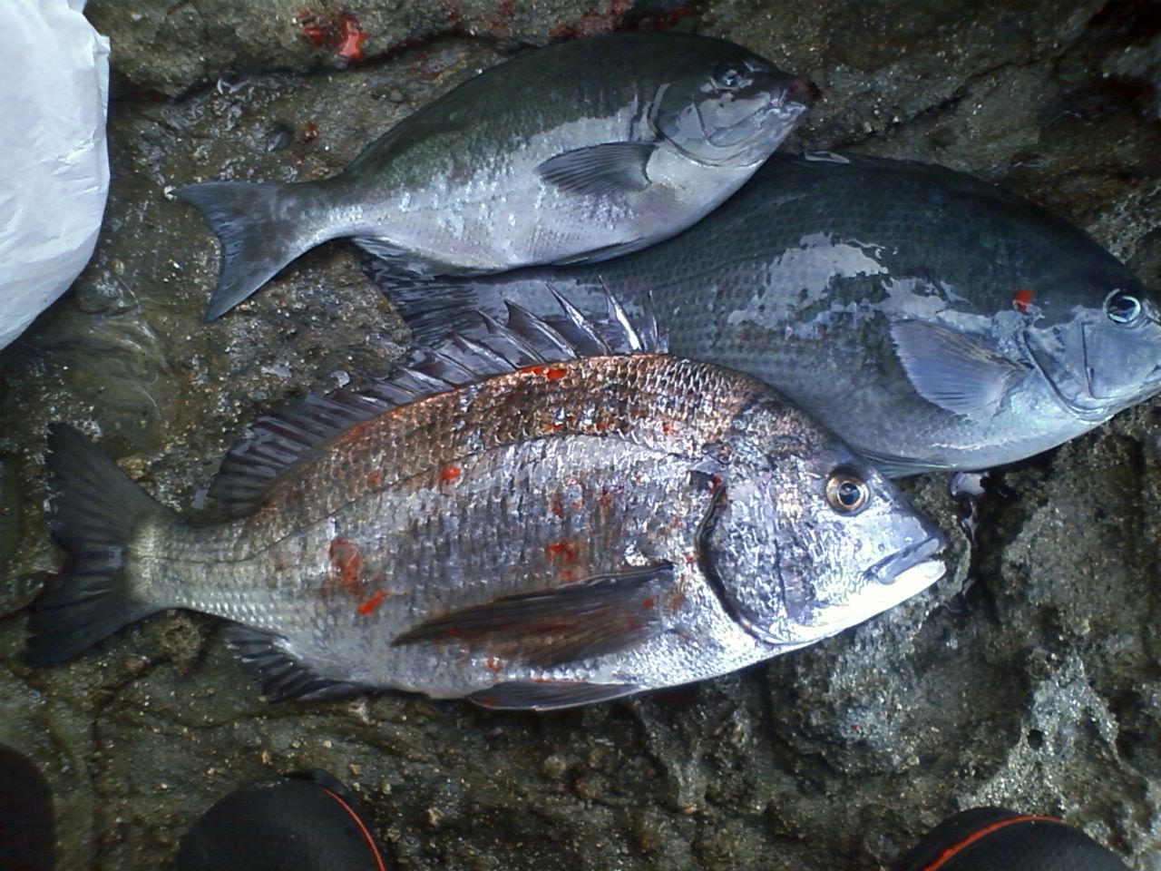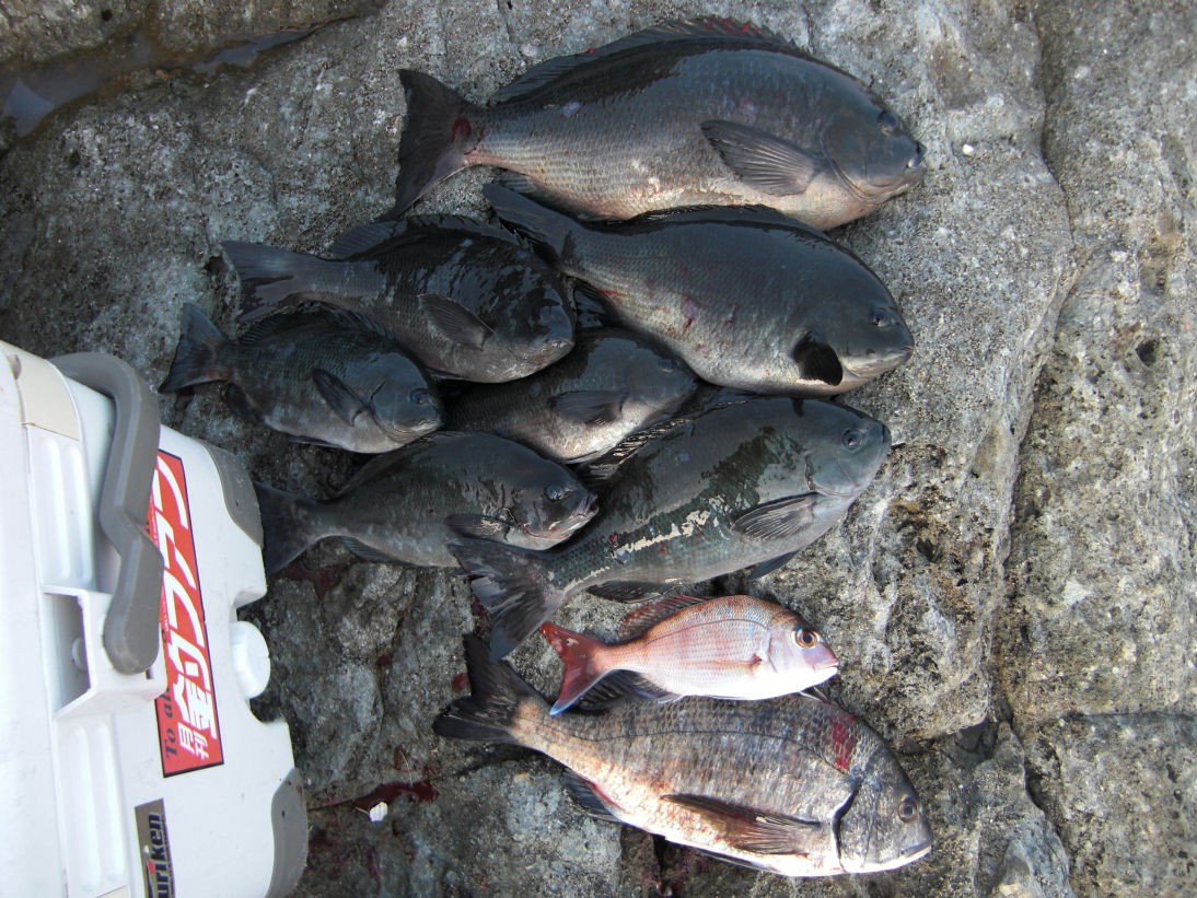 次は最初のチヌより少し小ぶりのチヌのようでしたがすっぽぬけでバラシ、最後にクロの型の良さそうなのが当たってきましたが張り出した根に当たってハリスを飛ばされてばらしてしまいました。