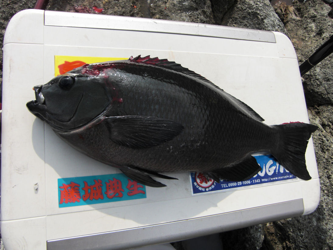 明らかにクロと分かるアタリにあわせを入れると、すぐに大型と分かる重量感で走りはじめ、何とか張り根を交わして取り込んだのは50cmに5mmほど足りない大型のクロでした。