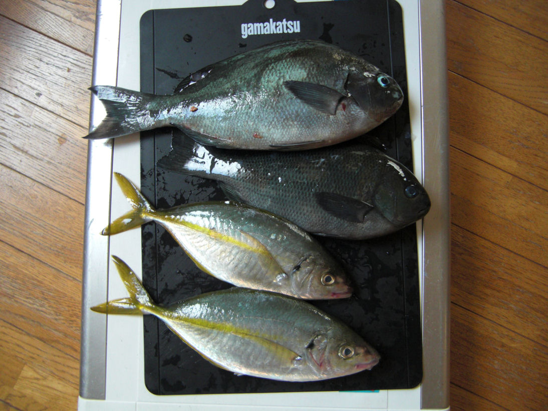 10時を過ぎたあたりからはクロの他にシマアジがポツリポツリ釣れてお土産に数匹釣って、12時に納竿としました。