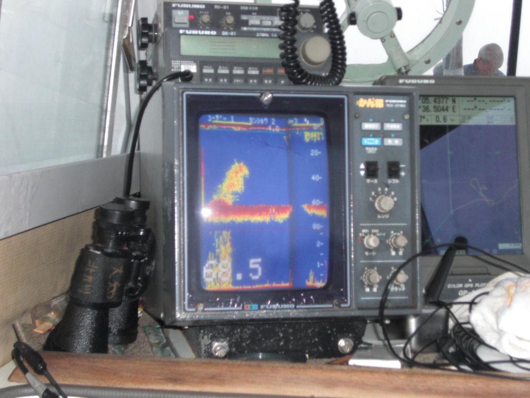 芦屋の港を出て約40分でポイントに到着です、水深は70メートル弱の所です。